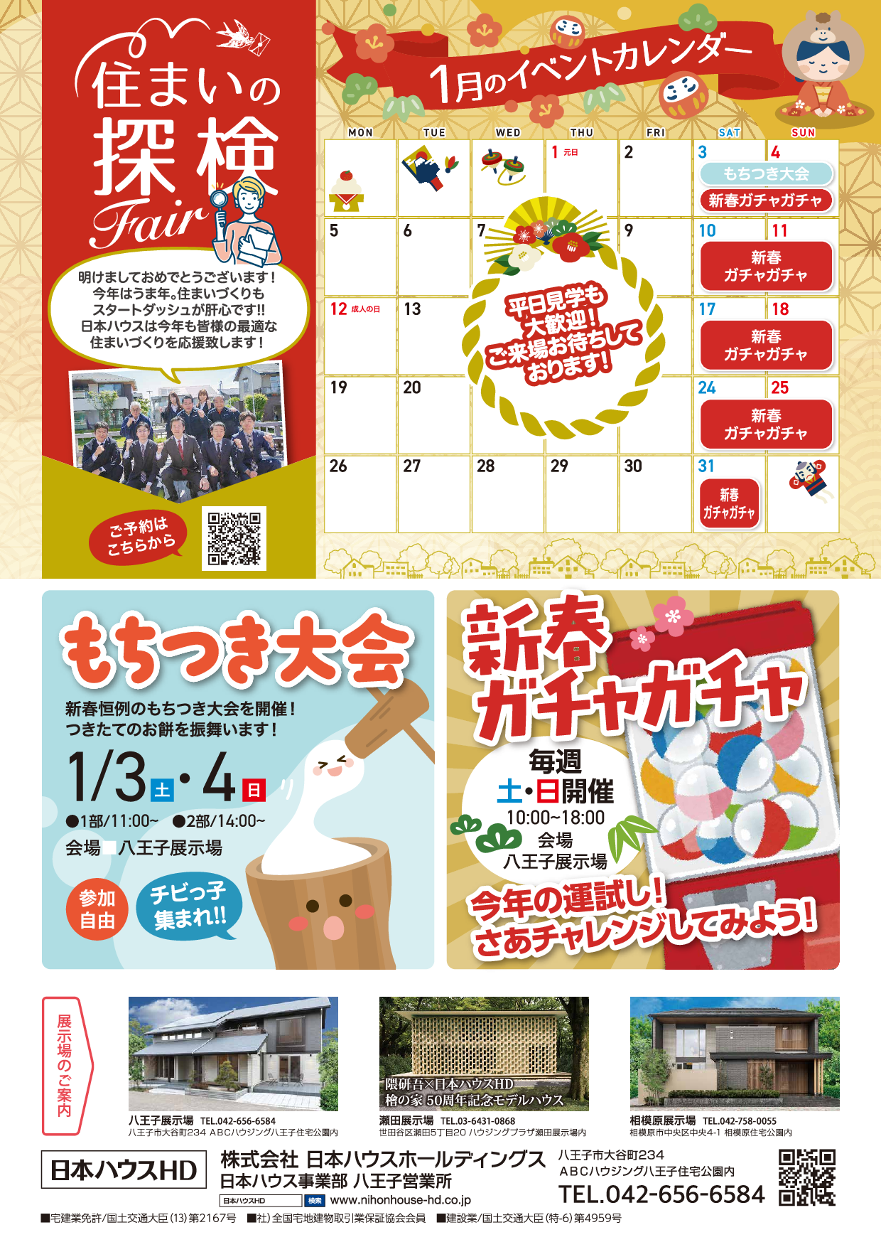 日本ハウスでは1月3.4.10.11.12日の二週に渡り、週末にもちつき大会を開催いたします。