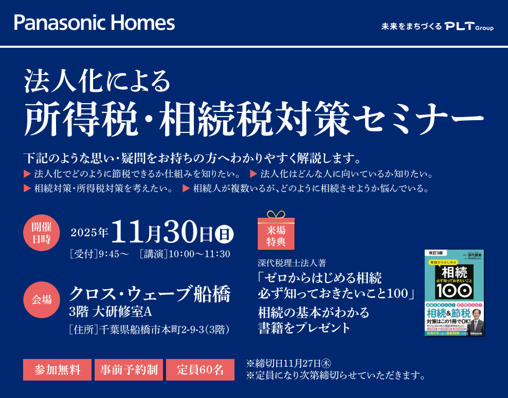 🔹🔷法人化による所得税・相続税対策セミナー開催🔷🔹