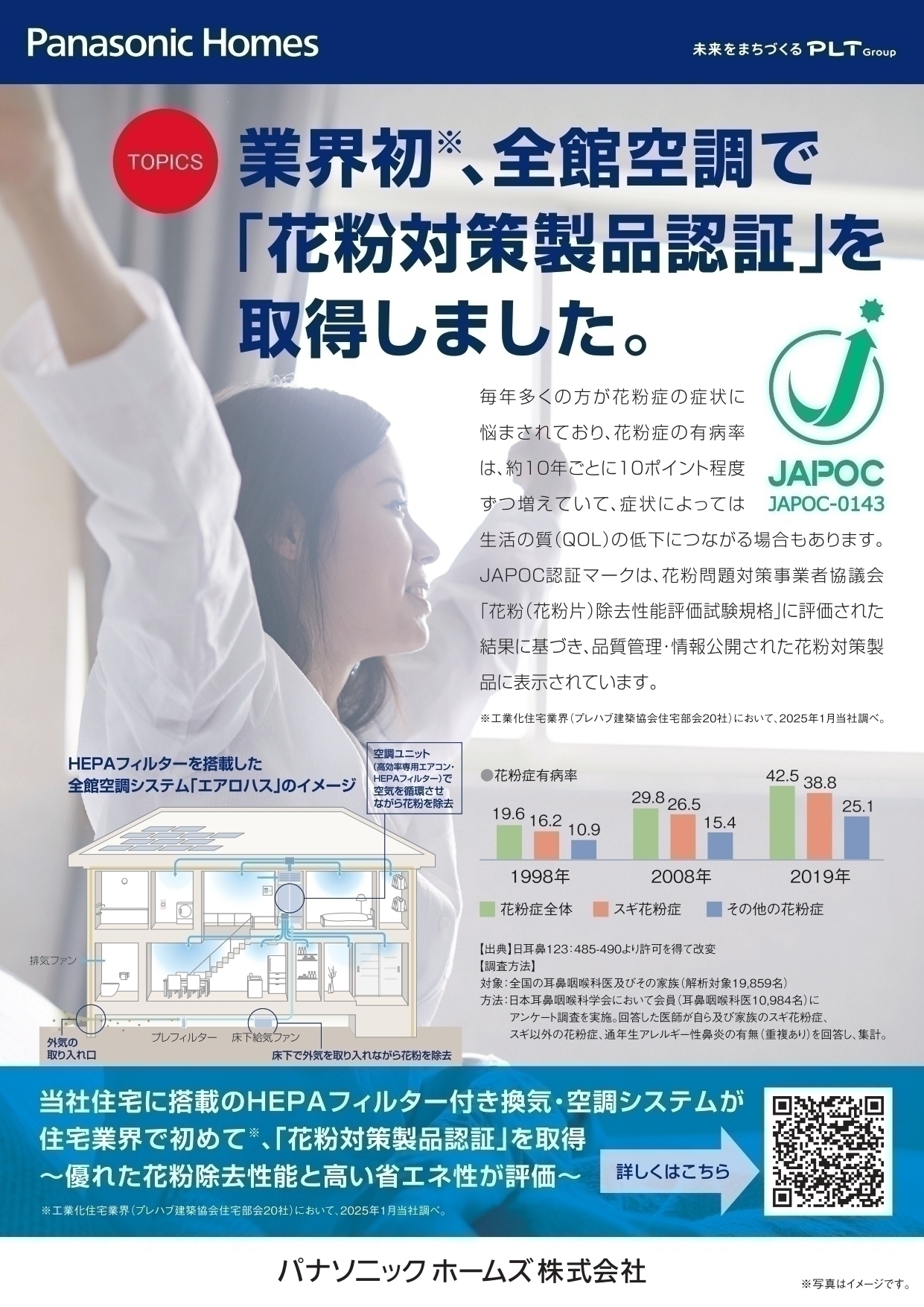 パナソニックホームズは「花粉対策製品認証」を取得しました!!