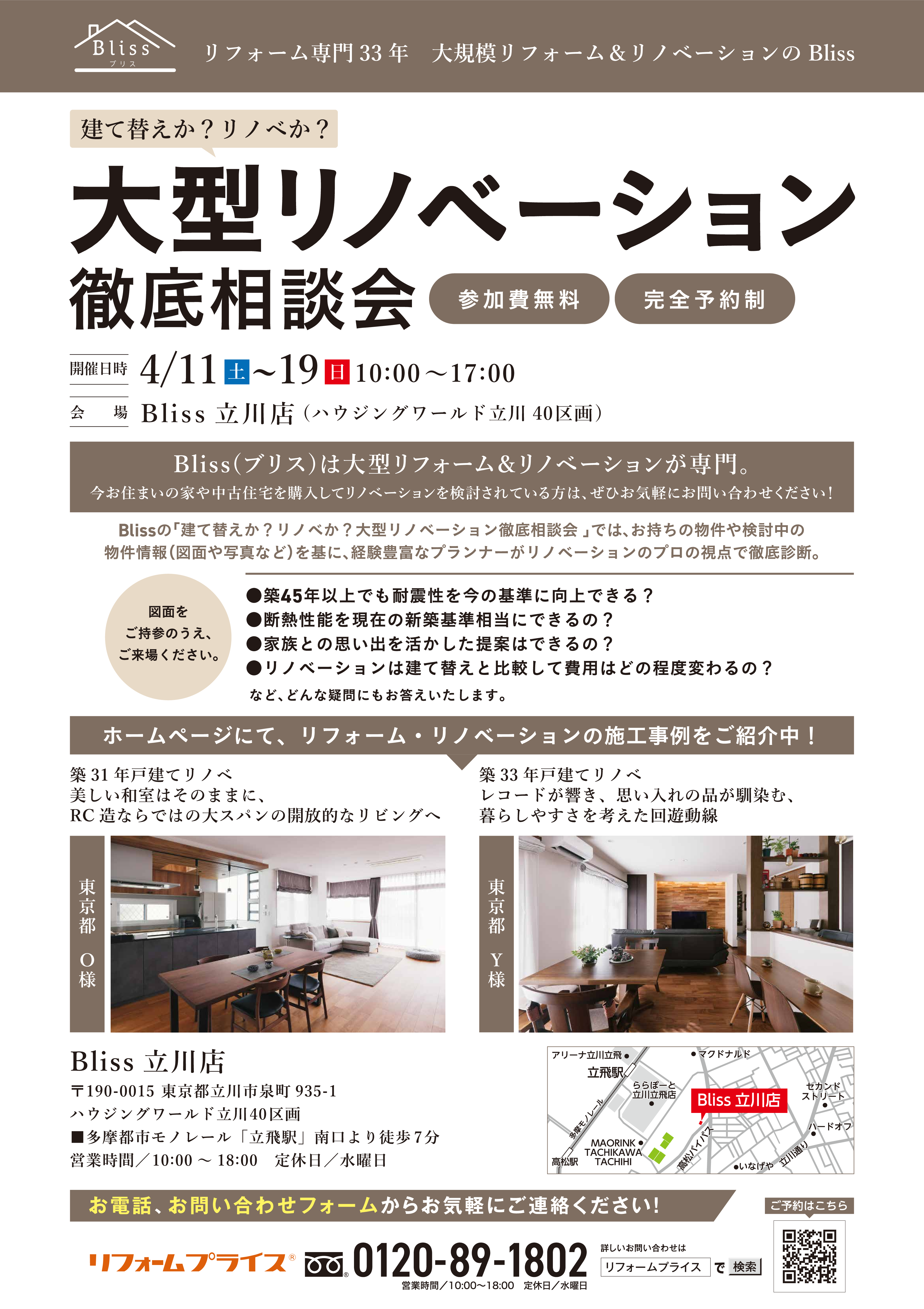 「他社でプランをもらったけれど、本当にこれでいいの?」「建て替えと言われたけど、リフォームという選択肢もあるのでは?」そんなお悩みにお応えする 無料の個別相談会を開催します。