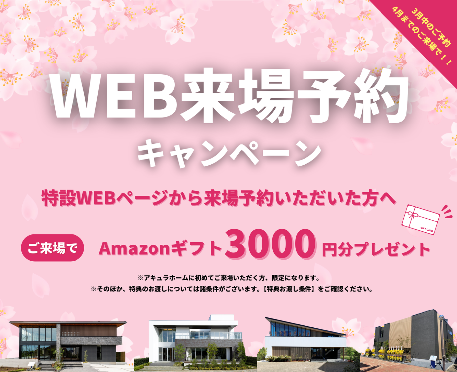 【総合展示場サイト限定】WEBから来場予約をいただくと、アマゾンギフト3000円分プレゼント!